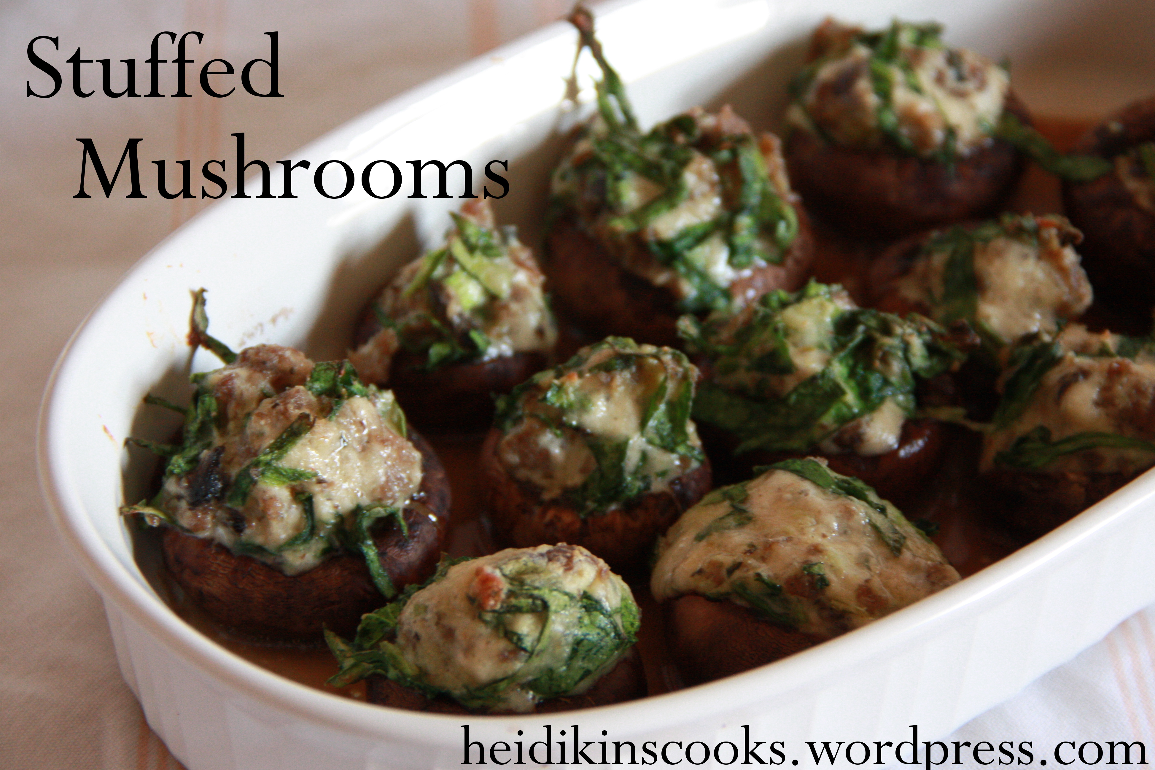 This delicious appetizer is sort of a family tradition for things like birthday parties, Christmas, Easter, Thanksgiving…basically any time my siblings get together someone brings stuffed mushrooms. They are a little bit of heaven. The last time I made these I added a handful or two of fresh spinach sliced into skinny ribbons and used Gruyere cheese because that’s what I had in the fridge. Oh. My! They were amazing! So amazing, in fact, that I got out my big, fancy camera and decided to photograph them for you instead of eat them all immediately. You’re welcome.
