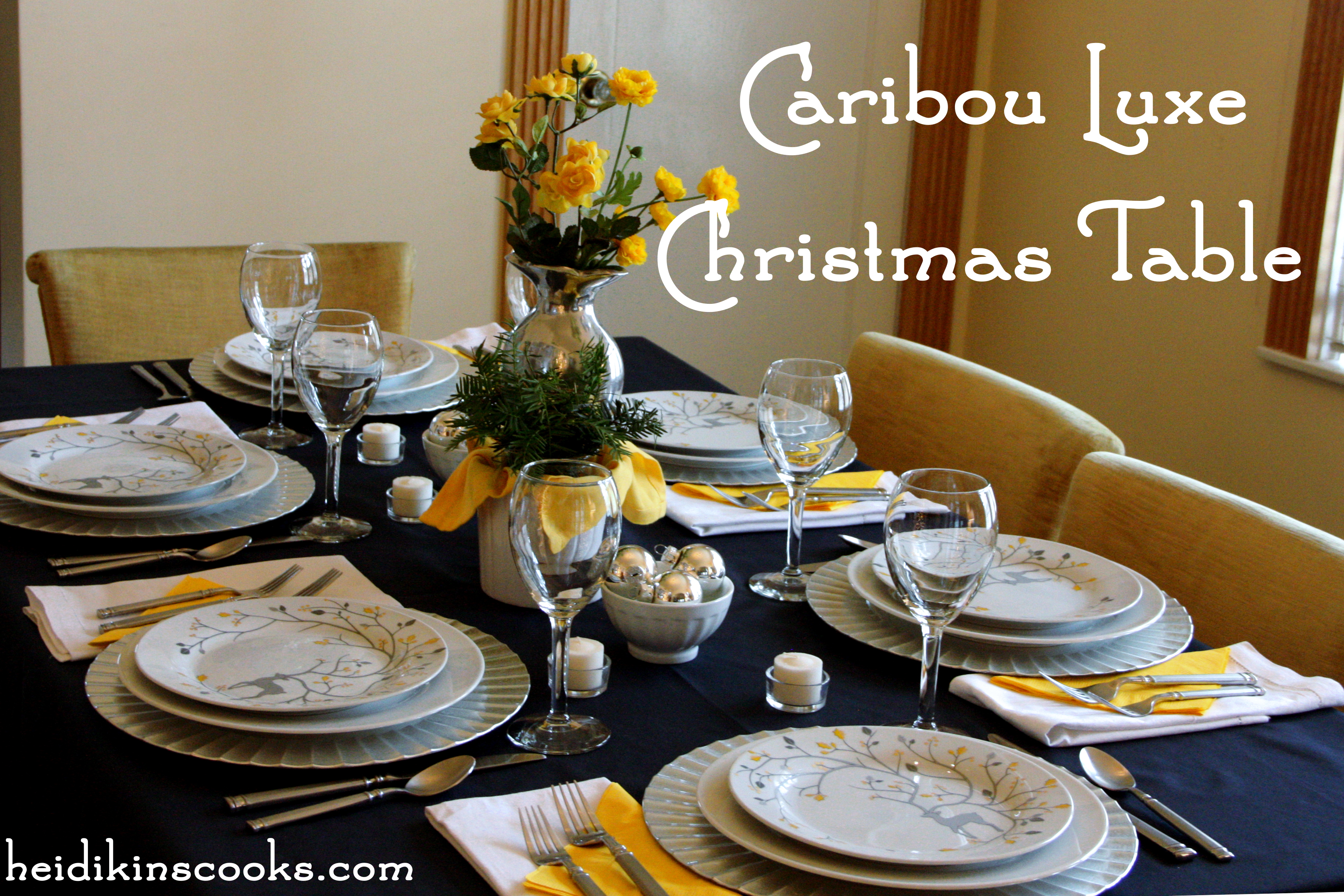 It seems sometimes that the Christmas holiday is absolutely dominated by all things red and green. Now, don’t get me wrong, I love red and green, but as soon as I saw these beautiful plates on eBay (Pottery Barn “Caribou Luxe”) I knew I wanted to collect a few because they were so nontraditional with the silver and yellow yet still very festive for a holiday brunch or dinner. It took me months to track down 6 plates in the right price point, but I love how this all came together.