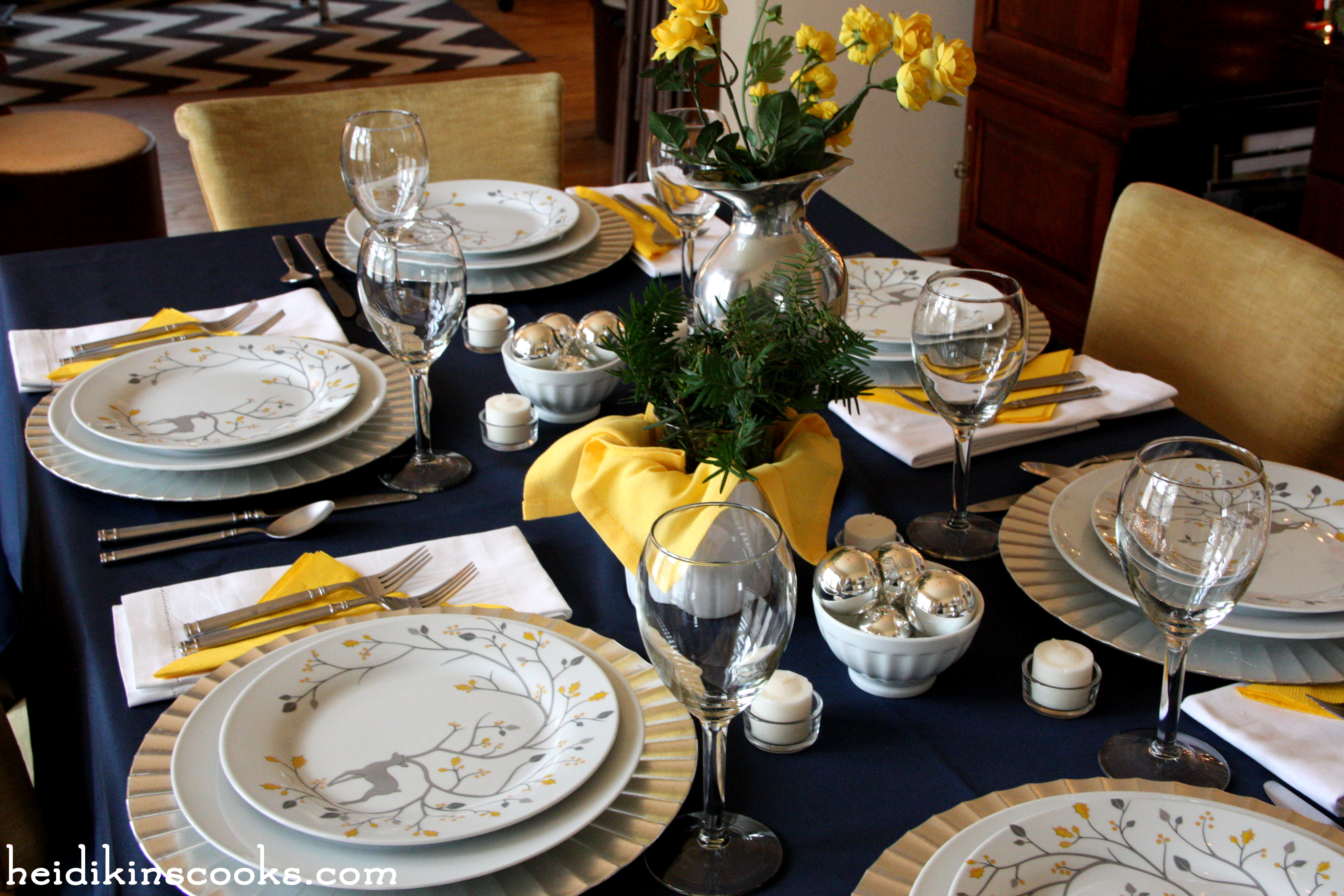 See what I mean about these plates!? They are so classy with the silver and golden yellow! I think you could use these through the winter for all sorts of beautiful place settings.