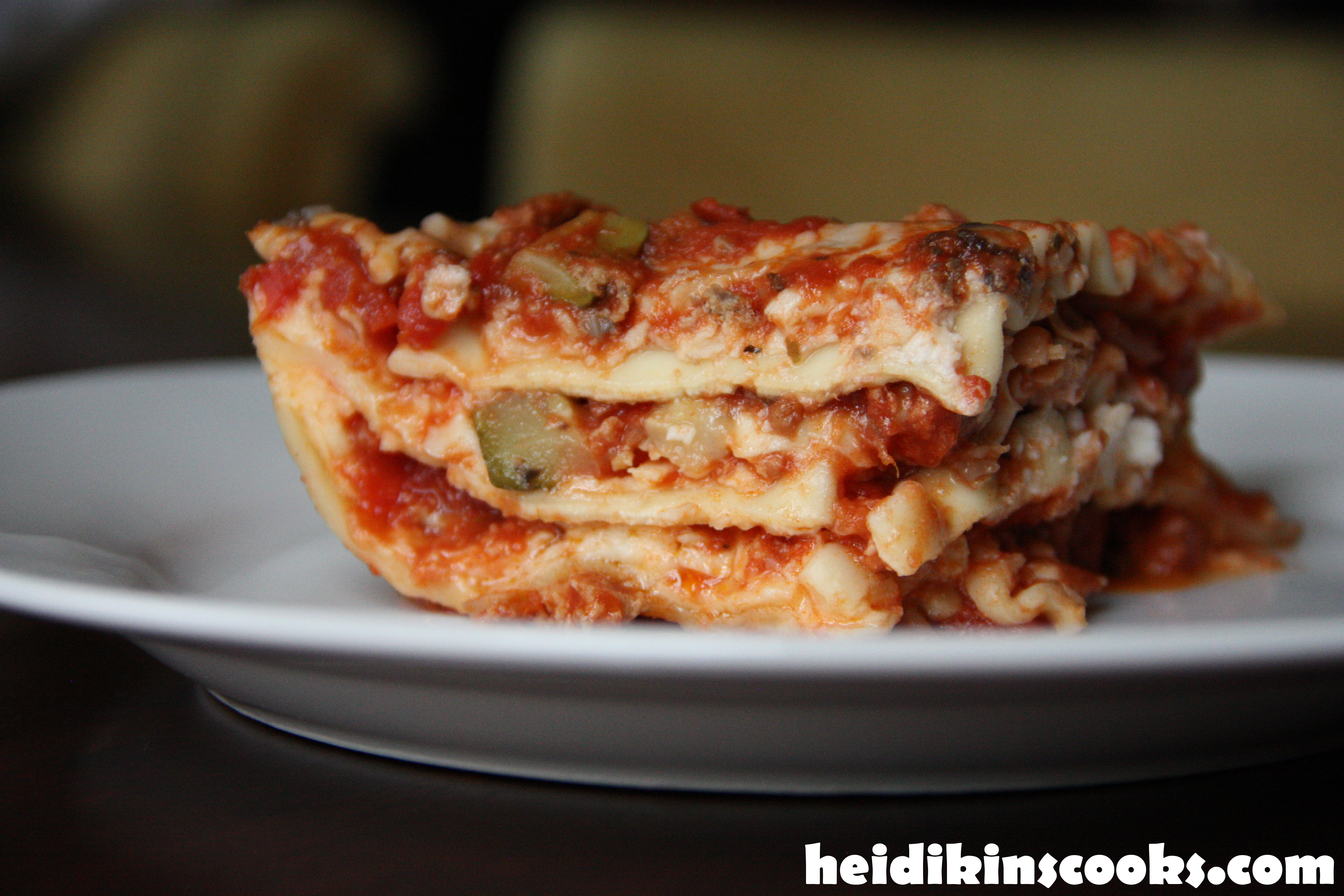 *Confession, warm lasagna is impossible to photograph well. The slice above was completely cold when I took my pics because that way it stays in cute little layers without slopping (deliciously!) all over your plate.
