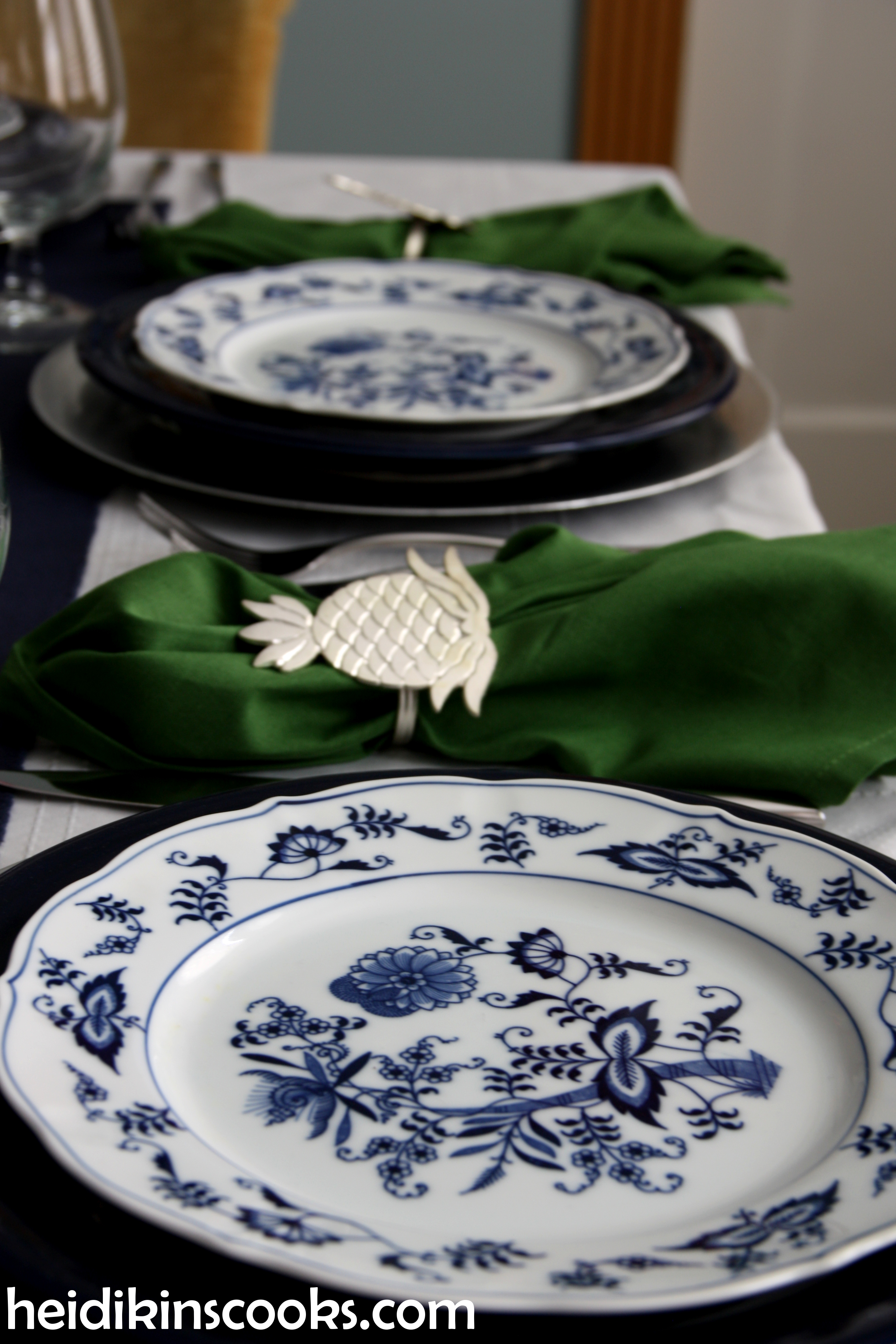 Blue Danube is an old china pattern with quite the history ranging from production in Germany to Japan. On eBay you can find dozens of pieces for pretty decent prices. I really love this, and have since the first time I spotted it. After looking for a couple of months I found a fantastic deal on a set of salad plates with scalloped edges and free shipping. I snapped them up immediately and love mixing this traditional pattern with my cobalt Fiesta plates and some pineapple napkin rings.